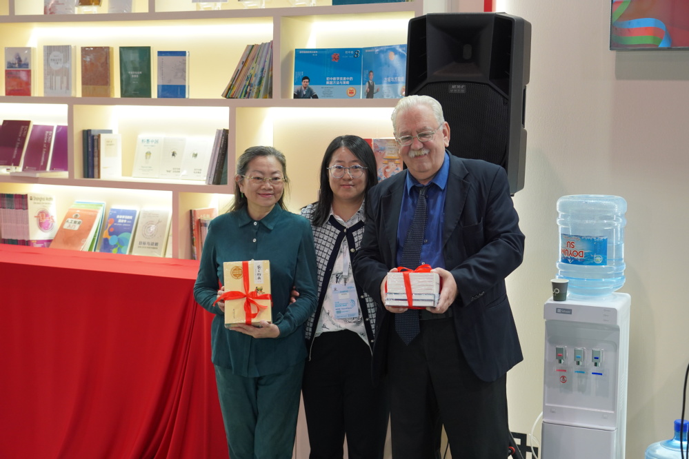 活动最后,华东师范大学出版社向阿塞拜疆语言大学孔子学院中、外方院长赠送《护生画集》、《爸爸的画》、《丰子恺家塾课》、《丰子恺漫画课》等书籍,以此留念。孔院中、外方院长对华东师范大学出版社表示感谢,预祝此次书展取得圆满成功。