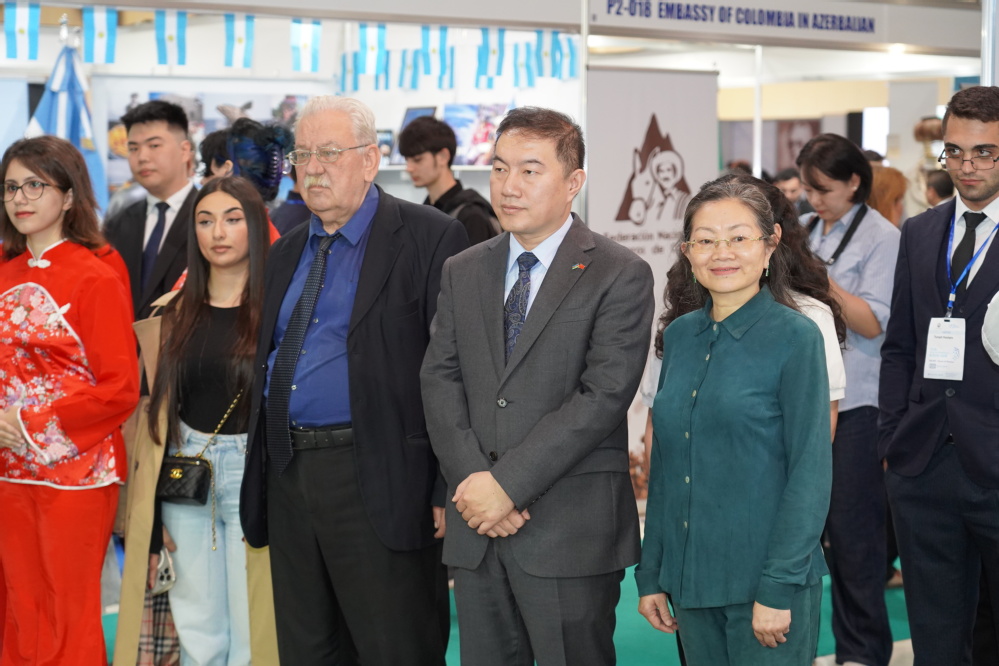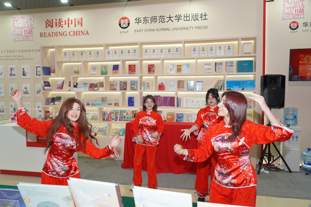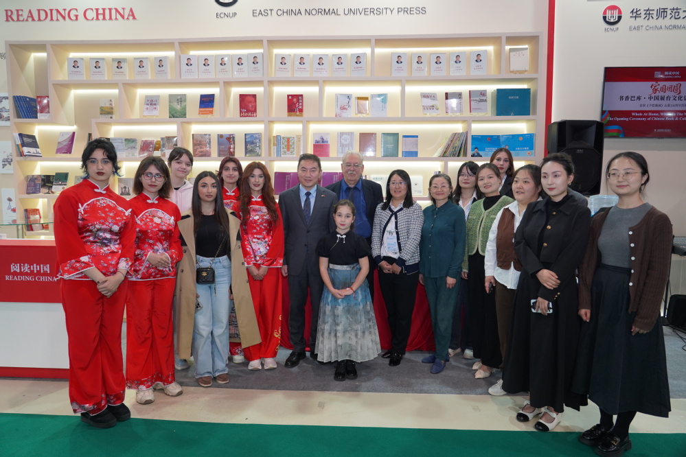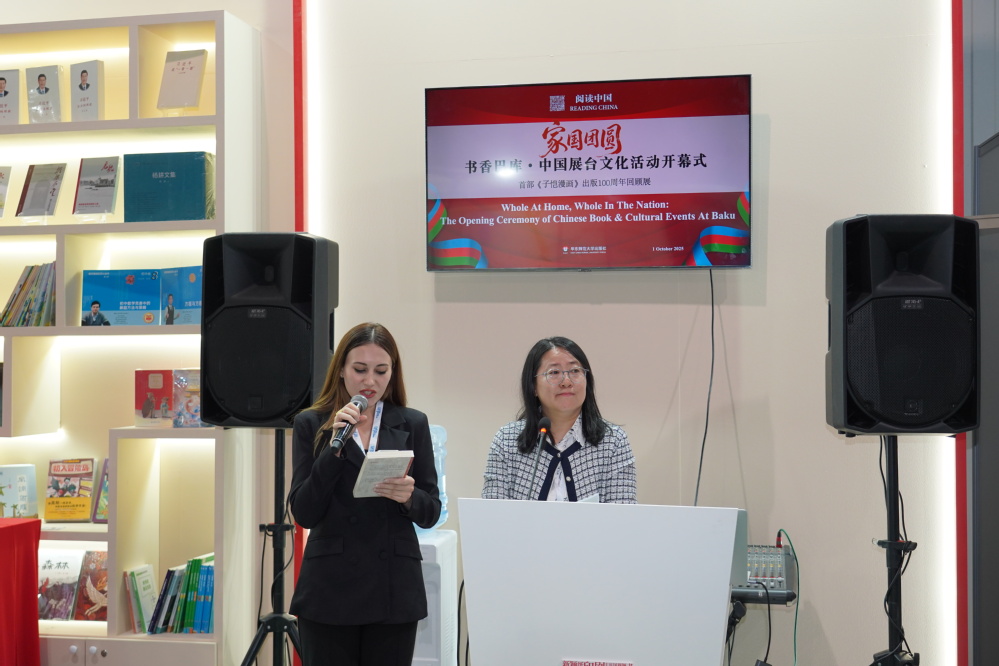 10月1日14时许,“家国团圆”书香巴库·中国展台文化活动暨首部《子恺漫画》出版100周年回顾展开幕式在巴库展览中心·中国展台隆重举行。活动由华东师范大学出版社国际部主任夏海涵主持。