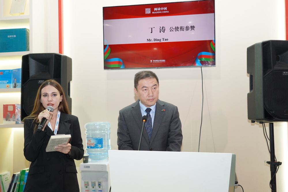 中国驻阿塞拜疆大使馆公使衔参赞丁涛、华东师范大学出版社代表团、阿塞拜疆语言大学孔子学院外方院长拉菲克·阿巴索夫、中方院长李姬花及孔院部分师生出席该活动。