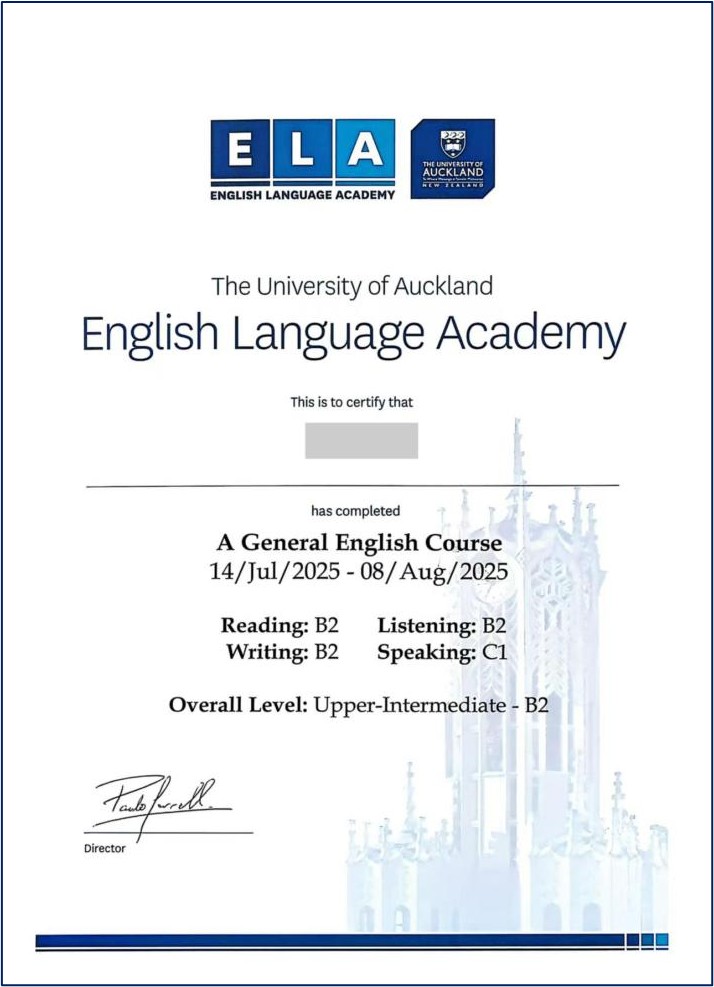 【项目收获】项目结束后将获得奥克兰大学颁发的项目结业证书和成绩评定单。