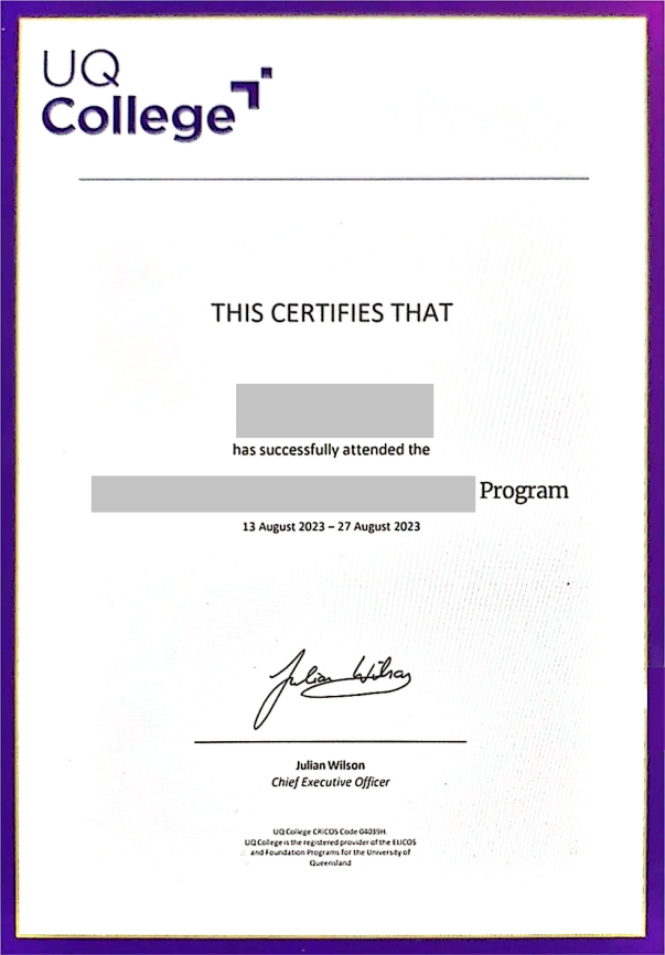 【项目收获】项目结束后将获得昆士兰大学颁发的项目结业证书和成绩单。