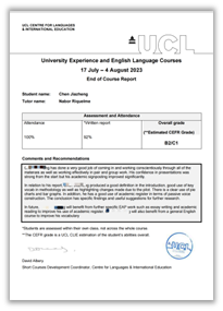 (伦敦大学学院项目证书和成绩报告样本)
