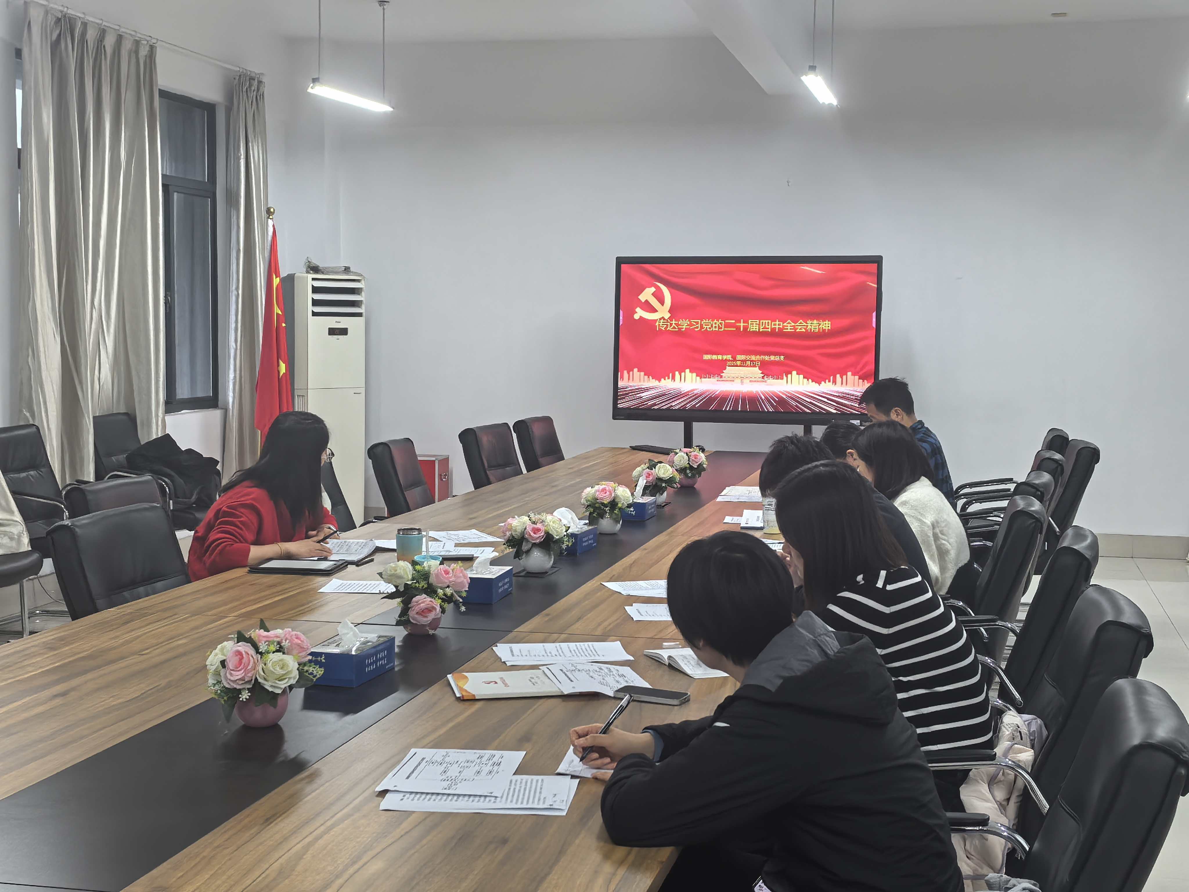 近日,国际教育学院、国际交流合作处党总支开展理论中心组会议,专题宣讲学习党的二十届四中全会精神学习教育专题党课,党总支书记项瑜主讲。