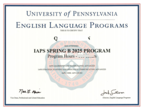 参加项目的学生与国际学生混合编班,由宾夕法尼亚大学进行统一的学术管理与学术考核,获得宾夕法尼亚大学正式成绩单。