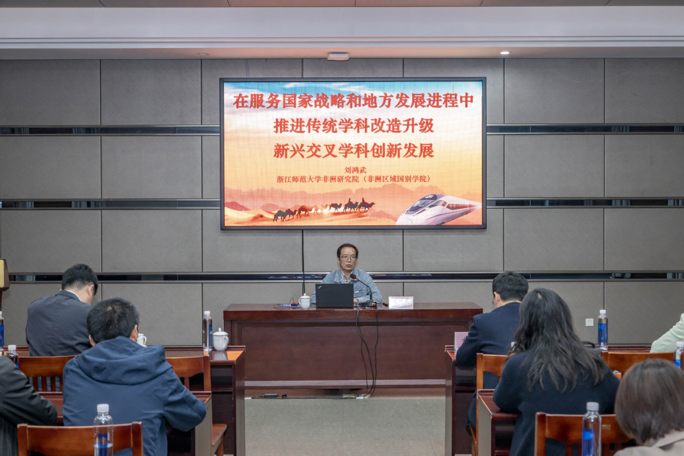 4月11日下午,浙江师范大学非洲研究院(非洲区域国别学院)院长刘鸿教授应邀做客外事大讲堂,作题为《如何在服务国家战略和地方经济社会发展过程中推动传统学科改造升级和新兴交叉学科发展》的学术讲座。讲座由经济管理学院执行院长陈菁泉主持,相关职能部门和二级学院负责人、教师代表参加。